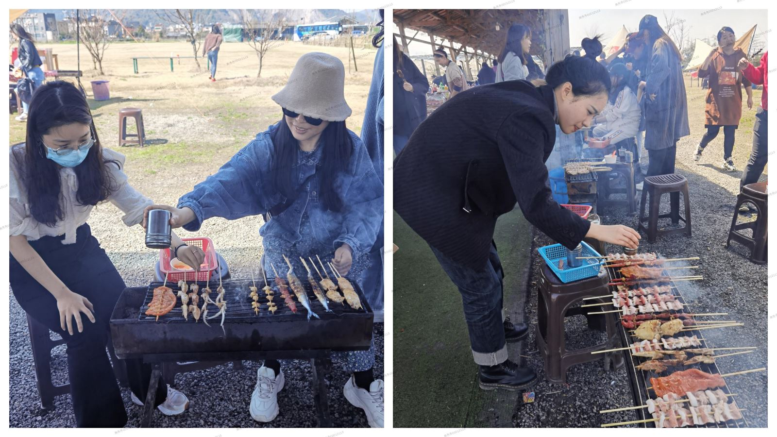 燒烤時間到,女職工們自行分為了六組,開始美食烤制。在現場,大家有序地進行分工合作,一起動手體驗燒烤的樂趣,面對豐富的食材,大家烤得熱火朝天,吃得不亦樂乎!