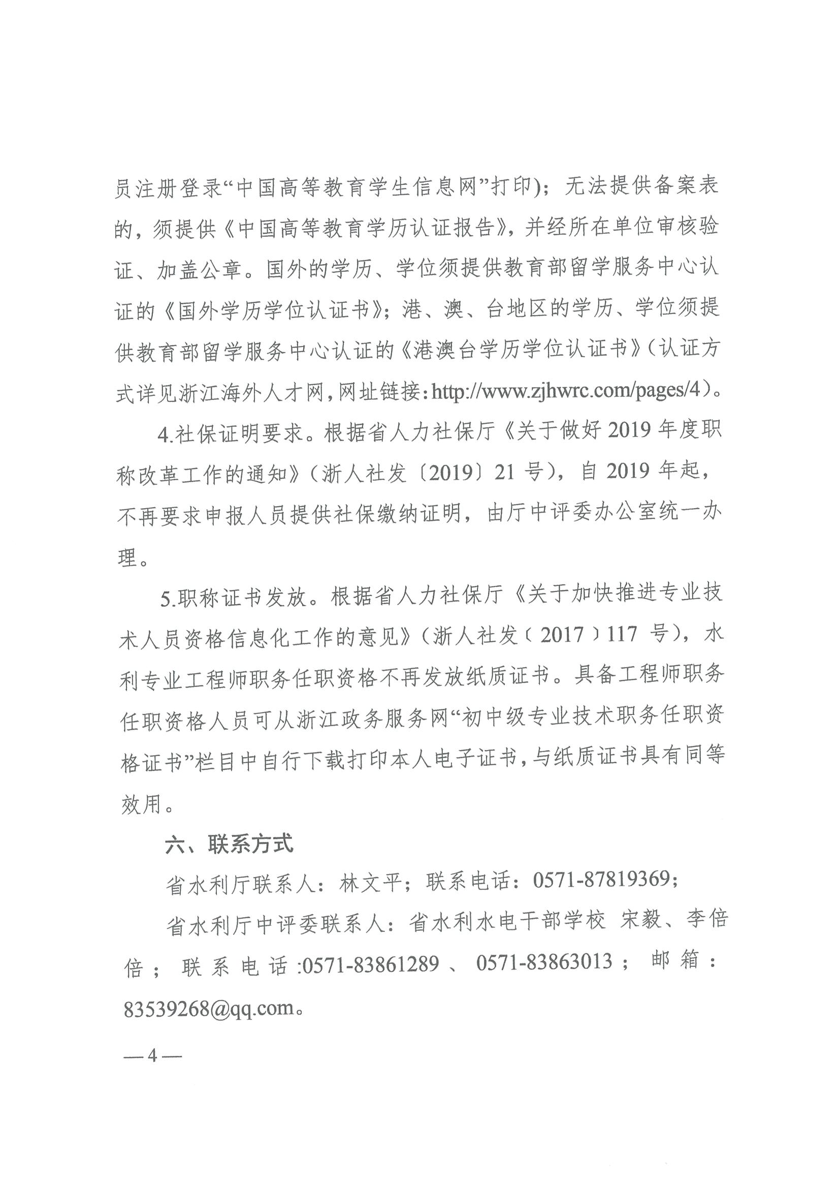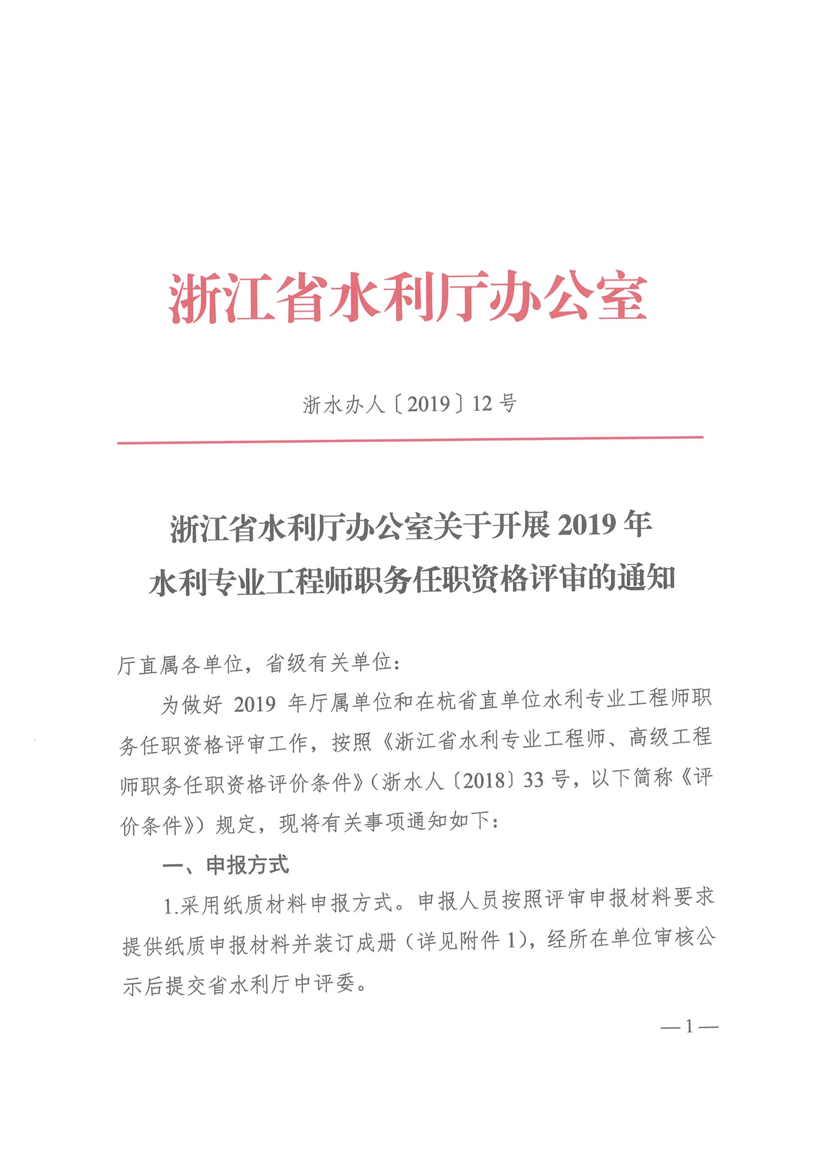 浙江省水利廳辦公室關于開展2019年水利專業工程師職務任職資格評審的通知
