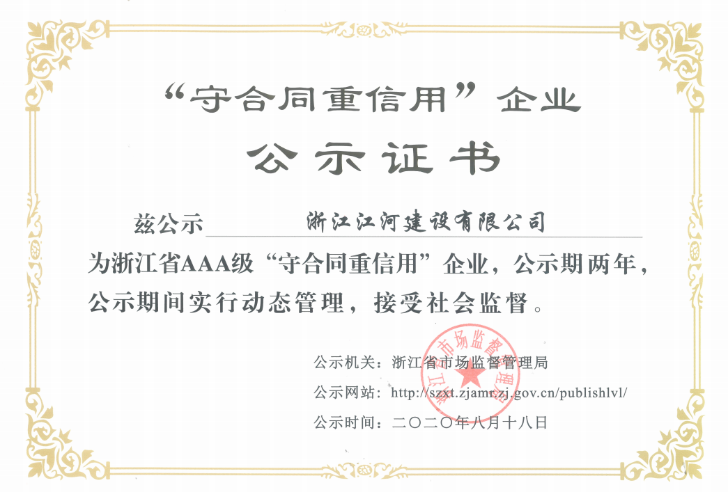 本次評價包括企業綜合素質、財務狀況、管理水平、市場行為和信用記錄五大項內容,涵蓋企業資質、經營規模、人力資源、管理者素質等近50項評價指標,說明公司在近兩年的合同管理、履約能力、守法經營、誠信經營等方面得到充分的肯定。