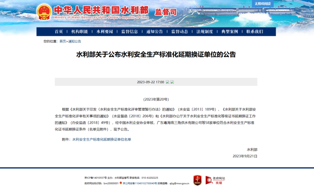 公司順利完成水利安全生產(chǎn)標(biāo)準(zhǔn)化延期換證