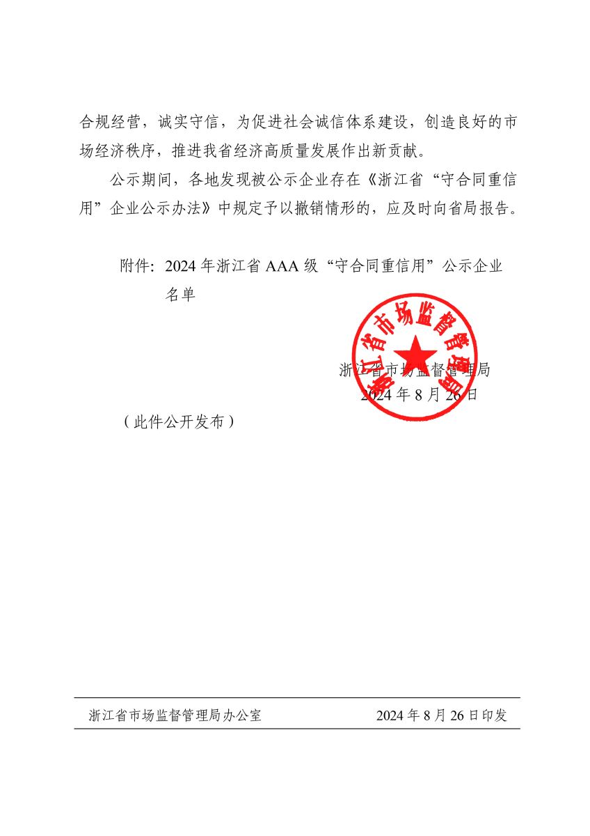近日,浙江省市場監督管理局公布了2024年浙江省AAA級“守合同重信用”企業名單,浙江江河建設有限公司繼續榮獲該稱號。