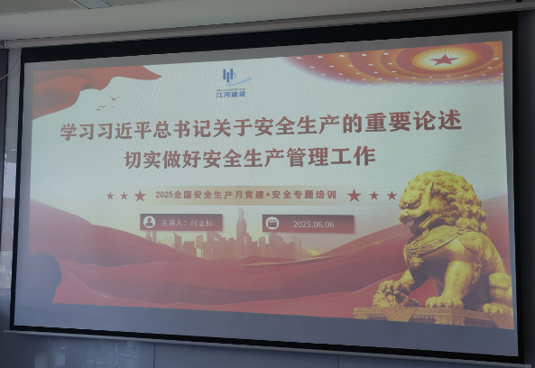 6月6日,江河建設黨總支在杭州總部開展6月份主題黨日活動,公司工會主席何金標作了題為《學習習近平總書記關于安全生產的重要論述,切實做好安全生產管理工作》專題講,公司積極開展“黨建+安全”支部書記講安全黨課活動,將黨建工作與安全生產深度融合,進一步提升公司黨員和職工群眾的安全意識與責任擔當。公司在杭的全體黨員、預備黨員、入黨積極分子、部分職工群眾等聆聽了講座。